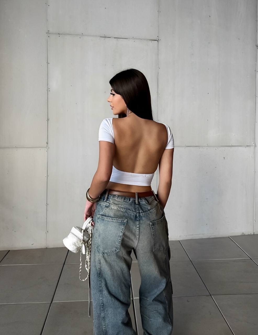 Cropped Manga Curta Aberto nas Costas